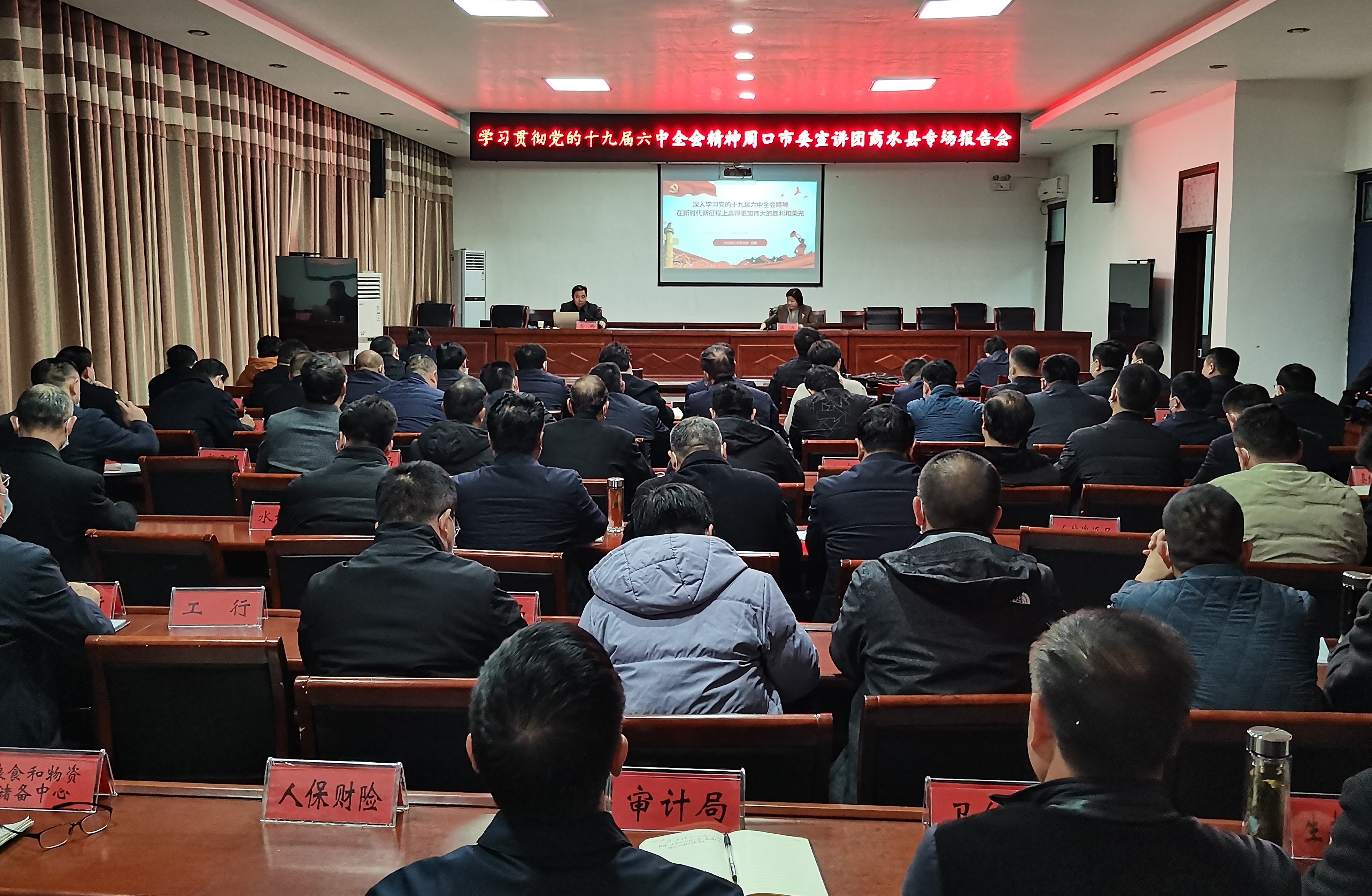 百年奮斗創(chuàng)輝煌,風(fēng)華正茂書華章。12月15日,學(xué)習(xí)貫徹黨的十九屆六中全會(huì)精神周口市委宣講團(tuán)商水縣專場(chǎng)報(bào)告會(huì)舉行,市委宣講團(tuán)成員高鵬作專題宣講報(bào)告,縣領(lǐng)導(dǎo)、鄉(xiāng)鎮(zhèn)辦事處和縣直單位主要負(fù)責(zé)人現(xiàn)場(chǎng)聆聽。