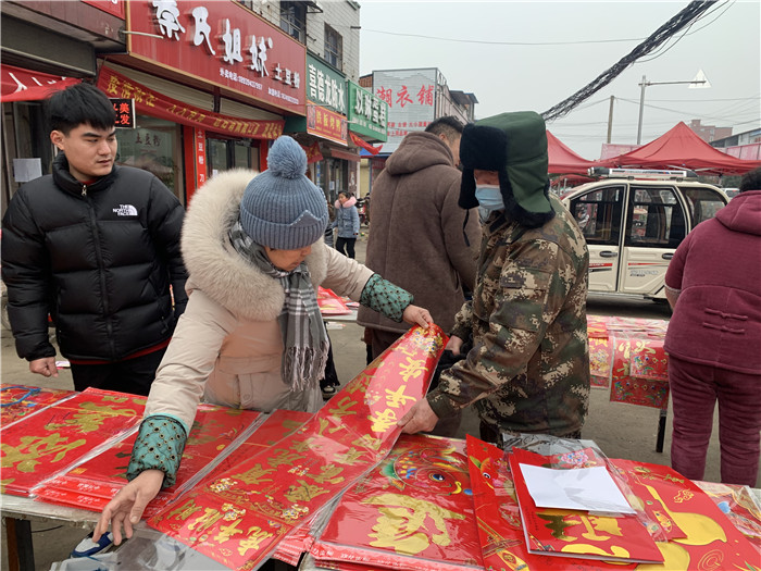 春節(jié)將至,不斷映入眼簾的喜慶“?!弊钟骋r著摩肩接踵的人群。趕集時,家家都要買幾張年畫、幾副春聯(lián),今年,以“虎”為主題的年畫春聯(lián)自然成了主角。“這個虎頭年畫今天已經(jīng)脫銷了,這個‘年年有余’的也喜慶?!睌傊魍醮蠼阋贿厧皖櫩吞裟戤嬕贿呅χf。年前,她早早囤好了近百種樣式的老虎年畫,現(xiàn)在看來還是不夠賣。除了過年必備的年畫春聯(lián),她還準(zhǔn)備了紅燈籠、紅燭等,也十分暢銷。