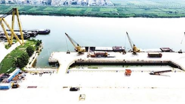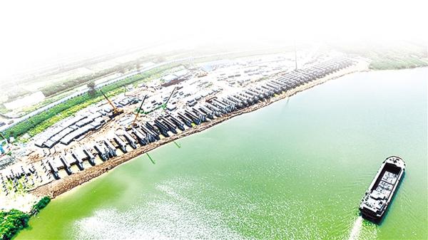 鹿邑港區(qū)玄武作業(yè)區(qū)于2021年5月底破土動(dòng)工,批復(fù)岸線118米,建設(shè)2個(gè)500噸級(jí)泊位,設(shè)計(jì)年通過(guò)能力為散貨進(jìn)出口100萬(wàn)噸。目前,鹿邑港區(qū)玄武作業(yè)區(qū)主體工程已全部完工,機(jī)械作業(yè)設(shè)備已全部到位。記者在現(xiàn)場(chǎng)看到,工人正在進(jìn)行后方陸域及服務(wù)區(qū)建設(shè)。
