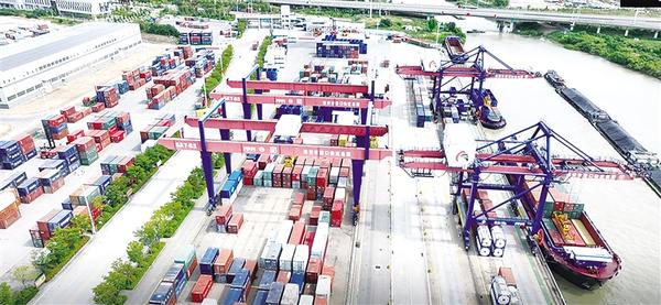 河道寬闊,巨輪穿梭;貨輪泊岸,裝卸繁忙;座座岸橋,擎臂而立;大船遠(yuǎn)航,劈波斬浪……