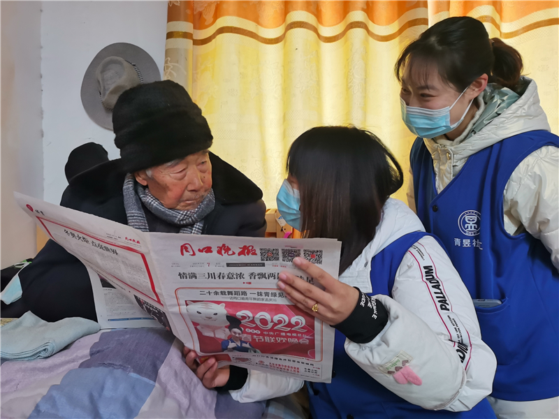 今年80歲的李東明,喜歡讀書看報(bào),但是由于年齡原因視力逐漸下降,讀書看報(bào)越來越不方便。自從敬老院內(nèi)設(shè)立了社工站,他每天最高興的事就是社工為他讀報(bào)紙上的內(nèi)容?!靶姨澾@些孩子的陪伴,讓我的老年生活越來越幸福!”李東明說。