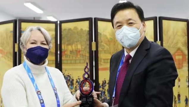 據(jù)北京冬奧組委消息,北京冬奧組委副主席楊樹(shù)安近日應(yīng)約在北京冬奧村會(huì)見(jiàn)美國(guó)奧委會(huì)與殘奧委會(huì)主席、美國(guó)冬奧代表團(tuán)團(tuán)長(zhǎng)萊昂斯,并代為接受美奧委會(huì)向北京冬奧組委主席蔡奇贈(zèng)予的榮譽(yù)獎(jiǎng)杯。