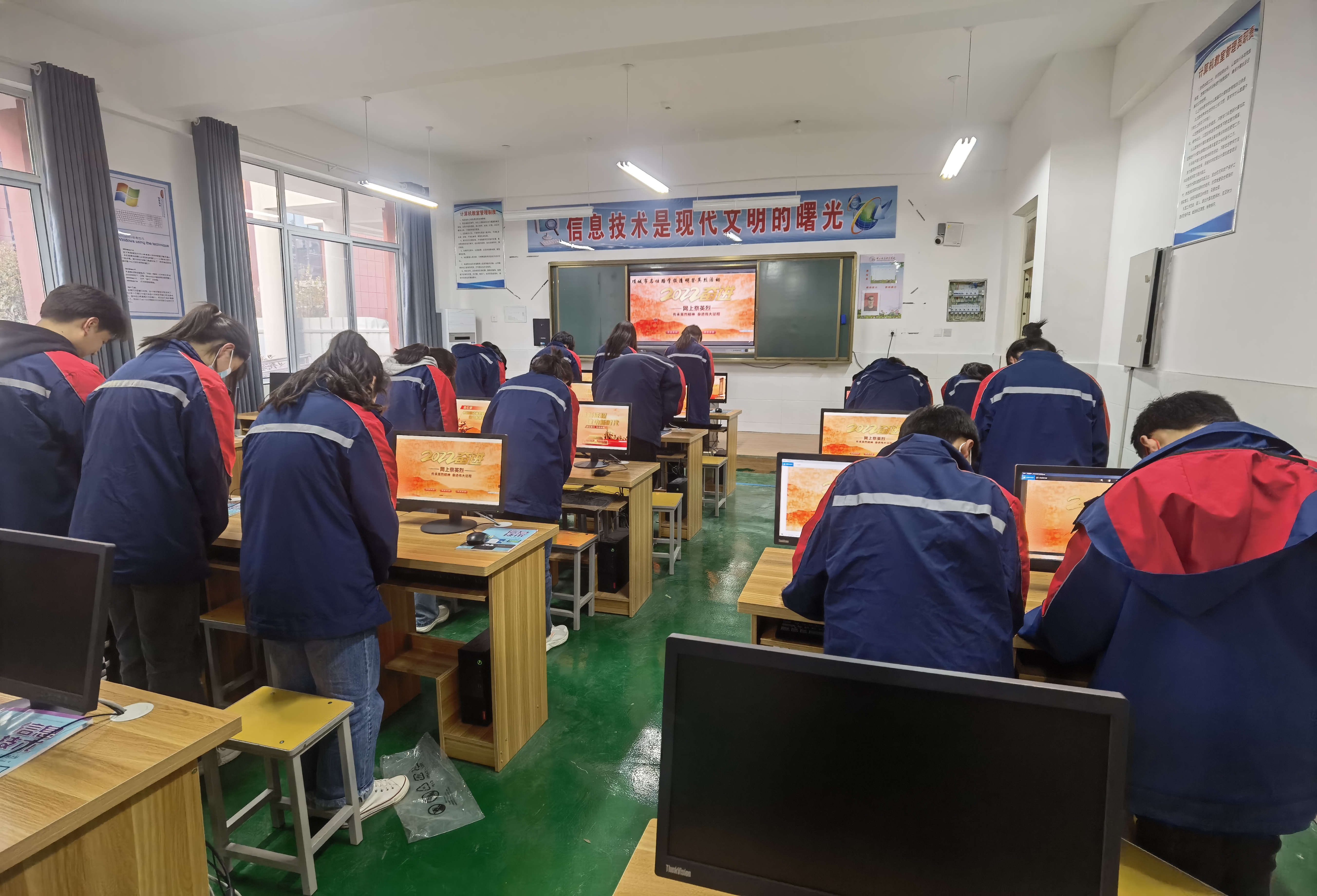 課堂上,在老師的指導(dǎo)下,同學(xué)們打開《中華英烈網(wǎng)》,為自己心目中的英雄點燭、獻花,“緬懷英烈,感恩祖國?!薄叭缃裆胶右褵o恙,烈士們安息吧!”“請黨放心,強國有我?!薄瑢W(xué)們紛紛留言表示,要繼承革命先烈遺志,努力學(xué)習,報效祖國。③8