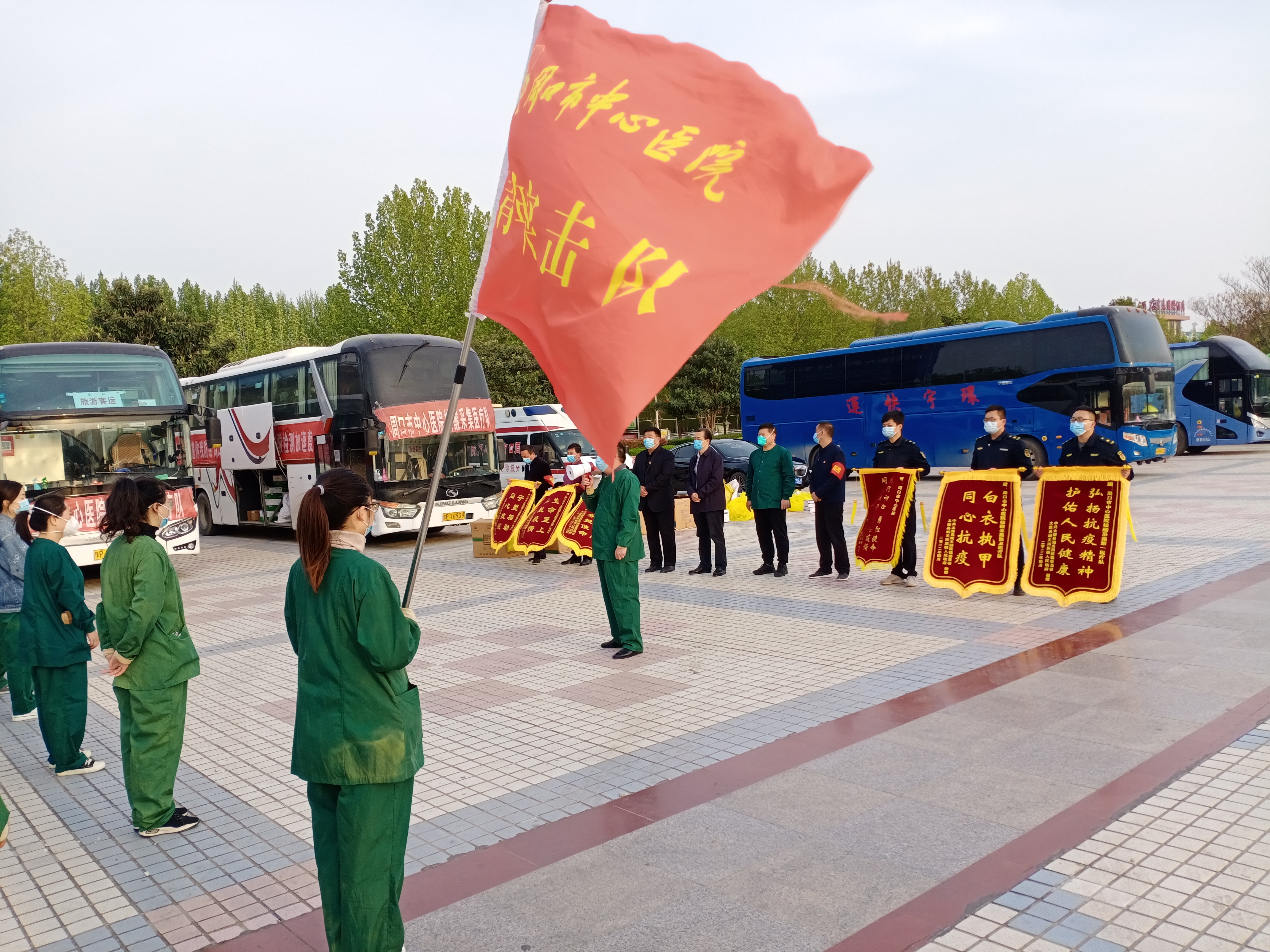 日前,太康縣城關(guān)鎮(zhèn)、符草樓鎮(zhèn)相關(guān)負(fù)責(zé)人將寫有“白衣執(zhí)甲 同心抗疫”“弘揚(yáng)抗疫精神 護(hù)佑人民健康”“守望相助 同心抗疫”字樣的錦旗送到前來支援太康縣的周口市中心醫(yī)院醫(yī)務(wù)人員手中,感謝他們的無(wú)私幫助。③6 記者 張洪濤 攝