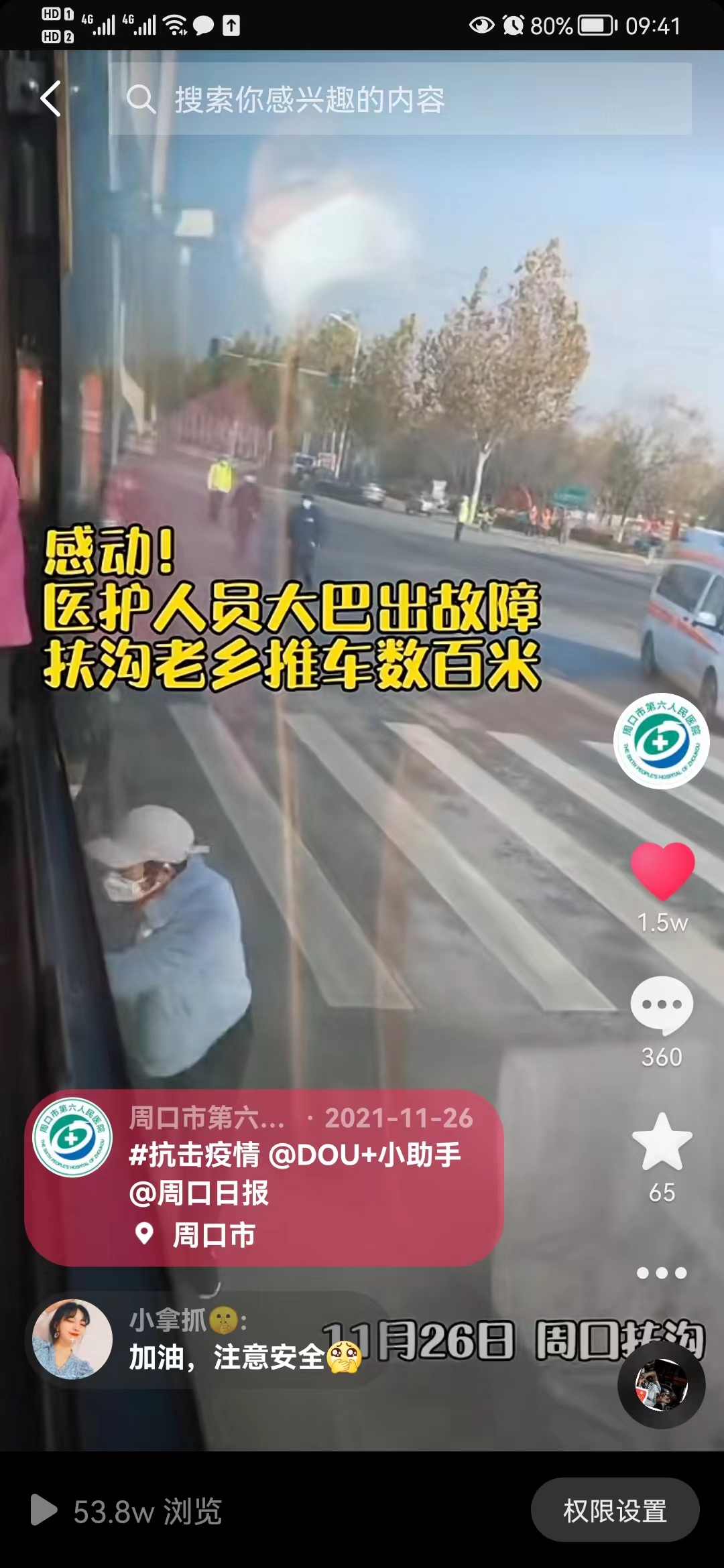 回去的時(shí)候,楊妮她們坐的大巴車出了故障,沒辦法正常啟動(dòng),扶溝鄉(xiāng)親們,親自推車數(shù)百米,幫助她們的大巴啟動(dòng)。她坐在車上非常感動(dòng),用手機(jī)記下了這一幕,在后來醫(yī)院的宣傳中,這條段視頻被點(diǎn)擊了50多萬次,收獲了1萬多人的點(diǎn)贊。