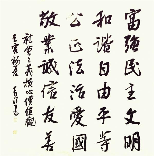 程度 中國(guó)書法家協(xié)會(huì)理事、隸書委員會(huì)委員,北京書法家協(xié)會(huì)理事,北京市朝陽(yáng)區(qū)書法家協(xié)會(huì)秘書長(zhǎng)(社會(huì)主義核心價(jià)值觀)