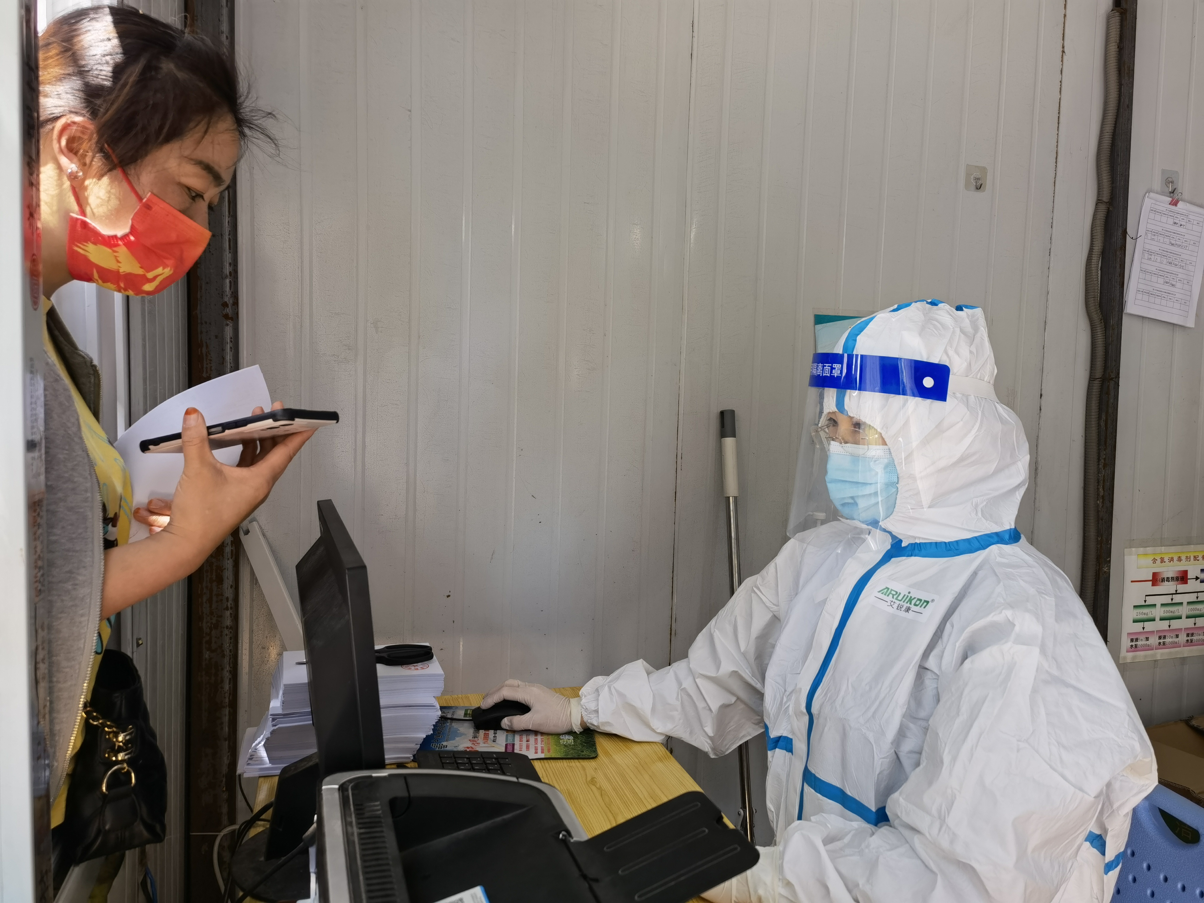 5月4日,記者在周口東新醫(yī)院核酸檢測點(diǎn)見到了全副“武裝”的王琳,她坐在核酸檢測點(diǎn)的核酸檢測報告打印崗位上,身穿防護(hù)服,認(rèn)真細(xì)致為需要幫助的群眾打印報告?!按蟮杰囕v安排,小到口罩發(fā)放、體溫計調(diào)配等防護(hù)物資保障都要協(xié)調(diào)統(tǒng)籌,一刻也不能停歇,我就想著別有什么地方落下了。安排好一切后,我回到醫(yī)院,同事們都前往全員核酸檢測一線了,這里人手不太足,我頂上。做好后勤保障工作,解決一線醫(yī)護(hù)人員的后顧之憂是我的責(zé)任和義務(wù)?!蓖趿照f。