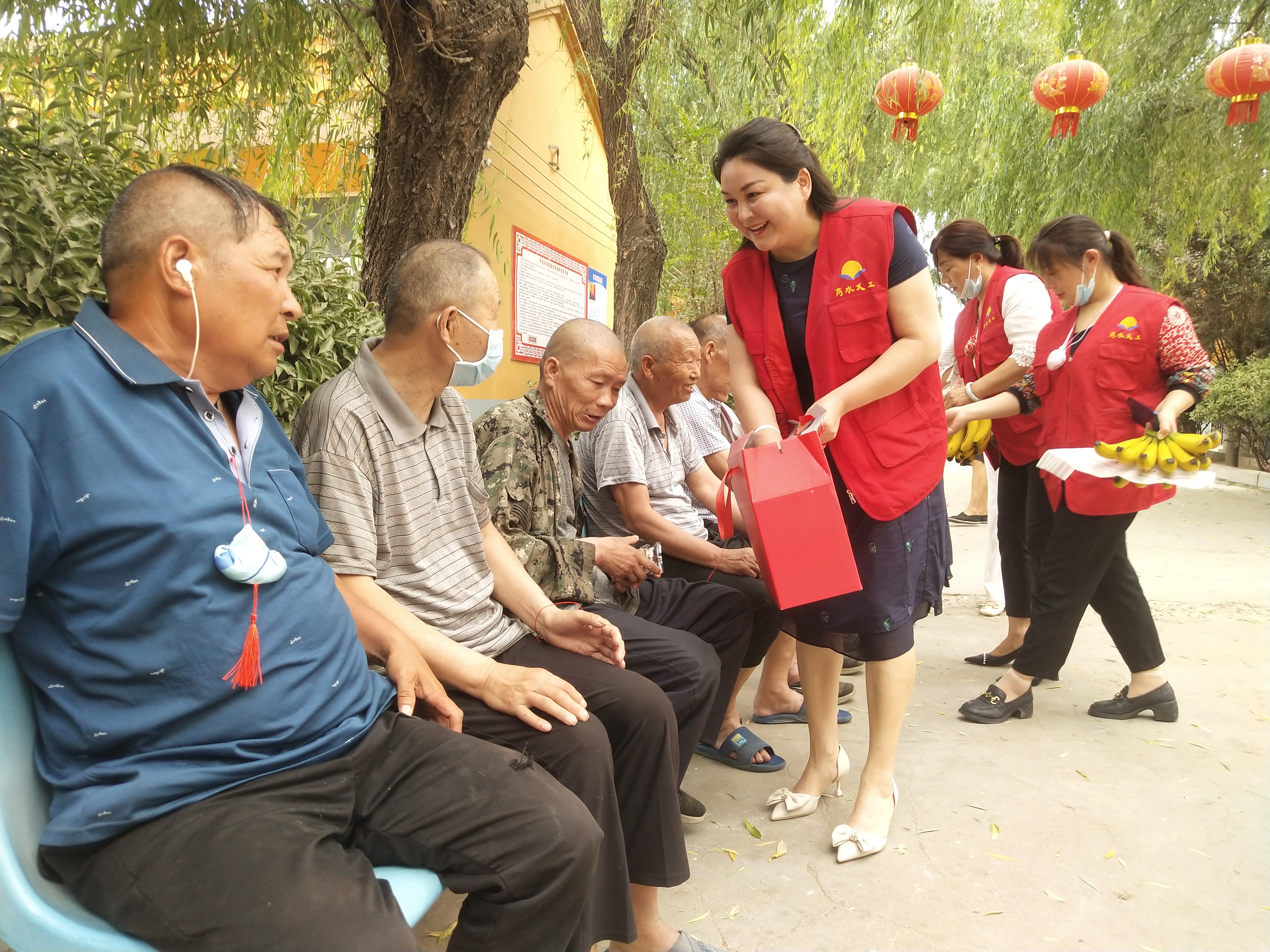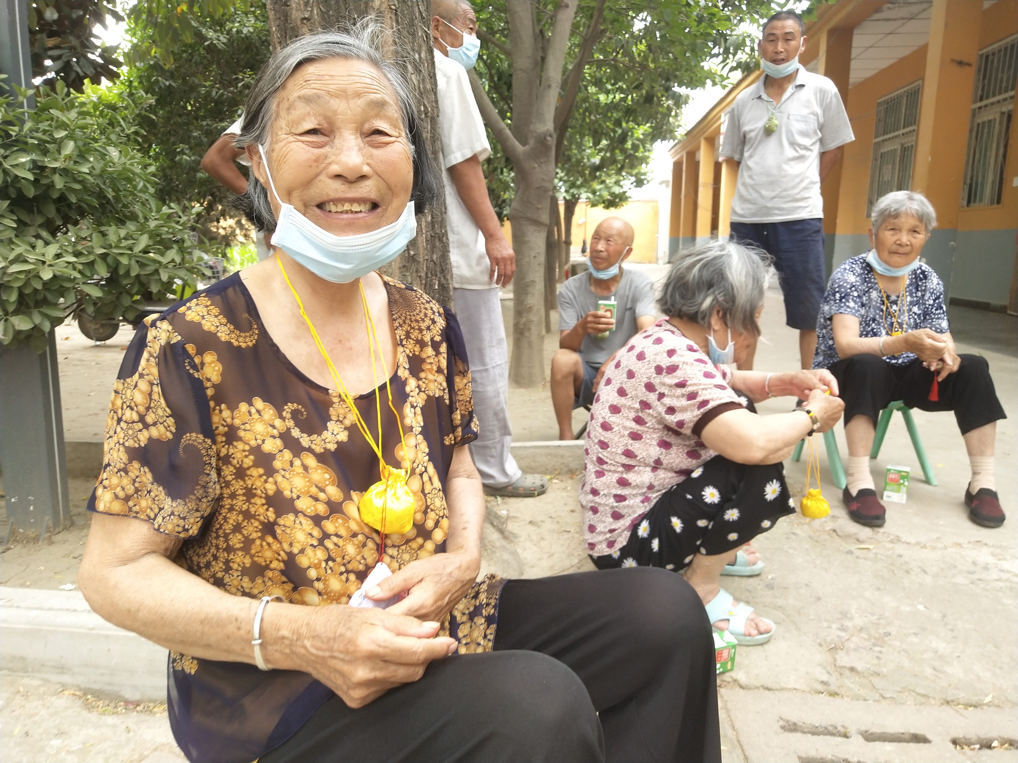 “大爺,大娘,來(lái)吃水果,我把香包給您戴上,祝您端午安康,健康長(zhǎng)壽......”劉玉英委托的愛(ài)心志愿者戚素華、劉影、袁鳳蓮、李霞、姚君英、李艷紅、王香清等還給敬老院的老人送來(lái)了粽子、水果,和老人聊天交談、佩戴香包,老人們臉上綻開(kāi)了幸福的笑容。