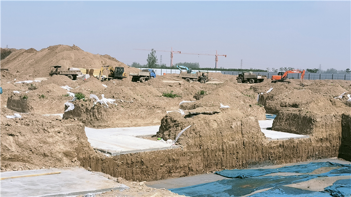 6月9日上午,記者走進(jìn)沈丘縣現(xiàn)代科技產(chǎn)業(yè)園標(biāo)準(zhǔn)化廠房項目區(qū),只見遠(yuǎn)處裝載機(jī)、運土車在工地上穿梭,近處是已經(jīng)澆筑完畢的地基墊層,地基旁邊十幾名鋼筋工將大盤的鋼筋拉直,然后再根據(jù)需要,在鋼筋加工設(shè)備上加工成形。