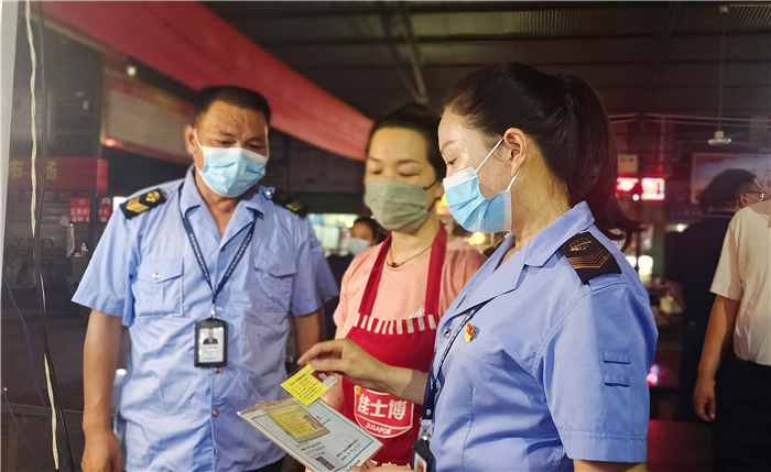 與此同時,項城市市場監(jiān)督管理局工作人員不定期前來查驗從業(yè)人員健康證,攤點證,確保攤主規(guī)范經(jīng)營。項城市城管局工作人員每隔兩天就會對攤主液化氣罐安全性能進(jìn)行檢查,全面消除夏季液化氣使用安全隱患。經(jīng)過多個部門通力合作,全面助推了項城“夜經(jīng)濟(jì)”安全、有序發(fā)展。