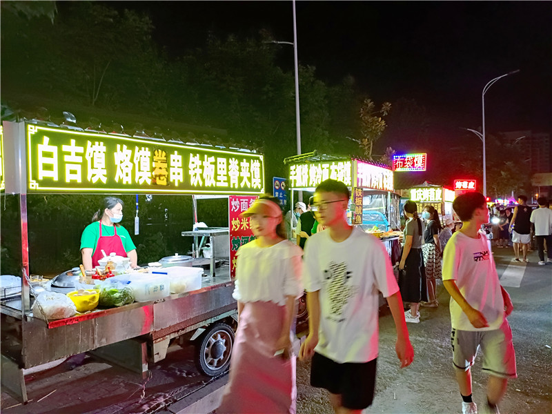 疫情散去,終歸風(fēng)平浪靜。城市夜晚被賦予更斑斕的色彩、更旺盛的生命力,夜消費、夜休閑、夜文化在鹿邑市民生活中不可或缺。為進一步促進“夜經(jīng)濟”健康發(fā)展,鹿邑縣商務(wù)局、市場監(jiān)管局、城市管理局等有關(guān)部門審慎包容、精準(zhǔn)施策,堅持管理和服務(wù)并重,因地制宜,完善城市便民疏導(dǎo)點經(jīng)營秩序,建立臨街餐飲店、夜市小吃外擺準(zhǔn)入機制。該縣城區(qū)原有8個便民疏導(dǎo)點,經(jīng)過實地調(diào)查論證,有關(guān)部門又將新近自然形成的3個商販聚集地設(shè)立為便民疏導(dǎo)點。同時,以個人申請、實地調(diào)查的方式對沿街門店外擺經(jīng)營進行放開。