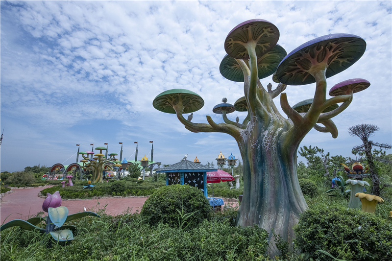 藍(lán)天白云下,茂密的森林里,一個(gè)個(gè)動(dòng)物造型的城堡里,是“魔幻”般的童話世界。