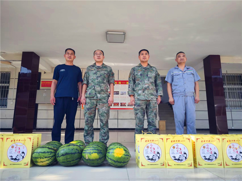 立秋過后,室外溫度依然高達(dá)39攝氏度,人們都躲在室內(nèi)開著空調(diào)或吹著風(fēng)扇享受著清涼。此時(shí),淮陽區(qū)人武部大院門口,一中年男子把車上所裝的“淮寶牌”焦饃等慰問品卸下后,徑直走進(jìn)區(qū)人武部政委劉鋒辦公室。