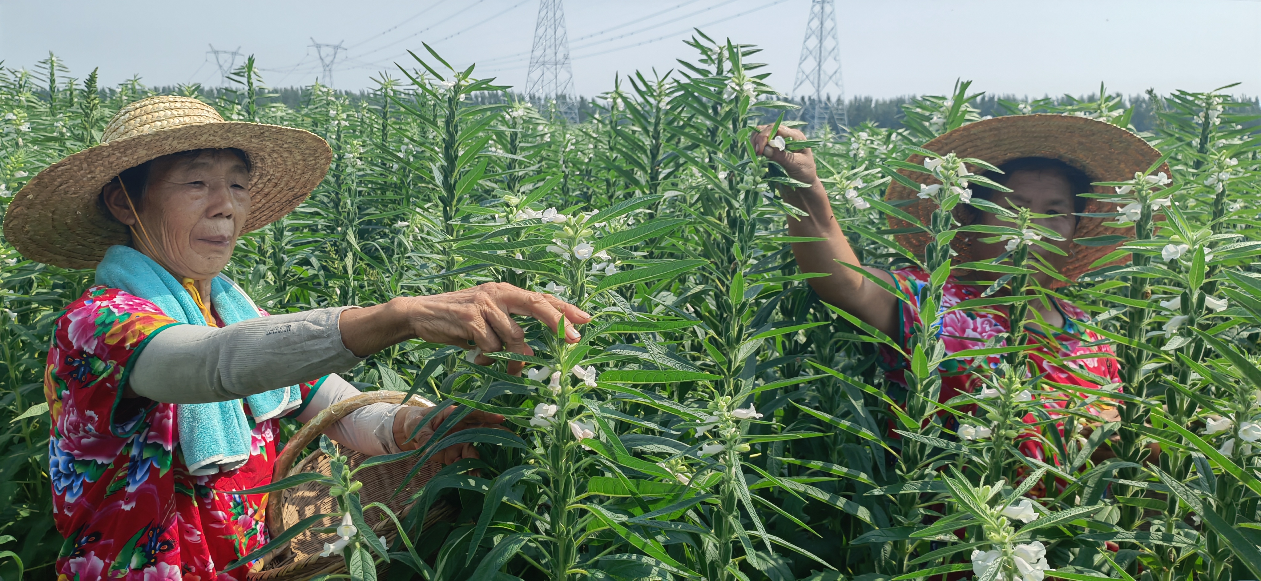 芝麻開花節(jié)節(jié)高。記者在商水縣種糧大戶劉天華的田地看到,100多畝芝麻正處在開花期,很是喜人。劉天華告訴記者:“這個芝麻跟別的不一樣,芝麻稈比以前的高,芝麻蒴比以前的多,一畝地比傳統(tǒng)芝麻增收100斤,每斤芝麻還能比以前的芝麻多賣兩塊錢?!?/p>