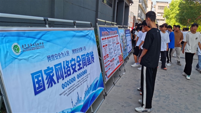 9月6日是國家網(wǎng)絡(luò)宣傳周校園日,鹿邑縣第二高級(jí)中學(xué)校園里整齊地?cái)[放出數(shù)塊制作精美、內(nèi)容充實(shí)的網(wǎng)絡(luò)安全宣傳展板,引起師生們駐足觀看。