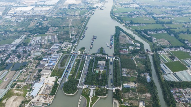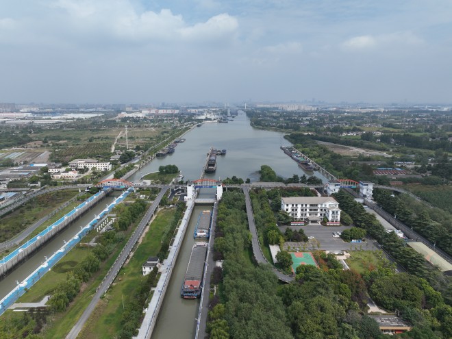 運河轉漕達都京,策馬春風堤上行。千百年來,京杭大運河貫通南北、貨暢其流,施橋船閘也在發(fā)揮出日益巨大的效益。②18