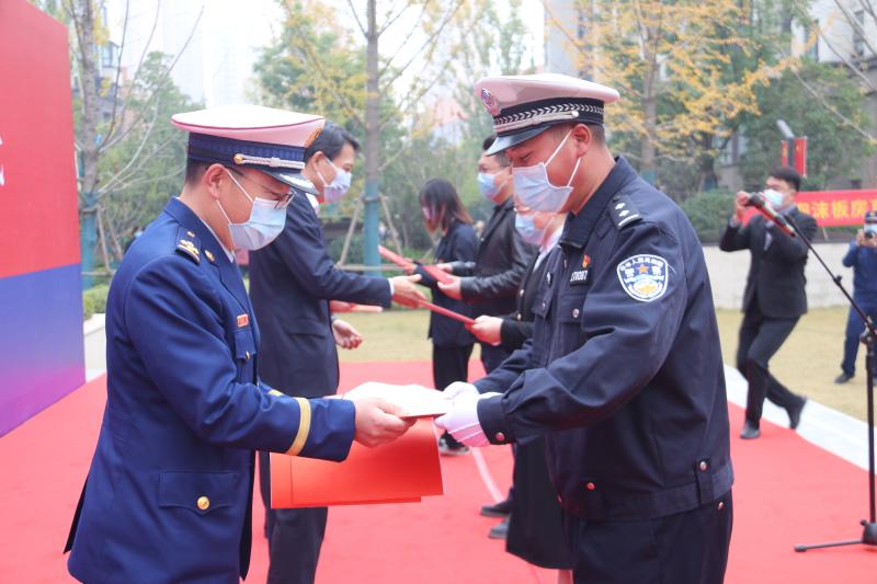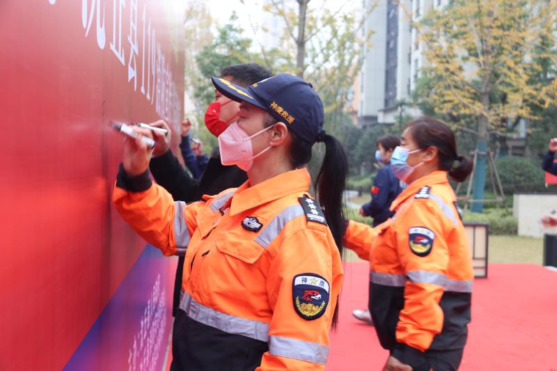 啟動儀式上,社區(qū)居民、民間救援人員等在宣傳墻上簽字,沈丘縣相關(guān)領(lǐng)導(dǎo)還為消防大隊聘任的4名消防宣傳形象大使頒發(fā)了聘任證書。