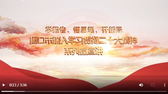 為深入學(xué)習(xí)貫徹黨的二十大精神,中共周口市委宣傳部、中共周口市委黨校和周口報業(yè)傳媒集團(tuán)共同制作“學(xué)報告 悟思想 開新局”系列宣講微視頻,將分專題陸續(xù)推出。