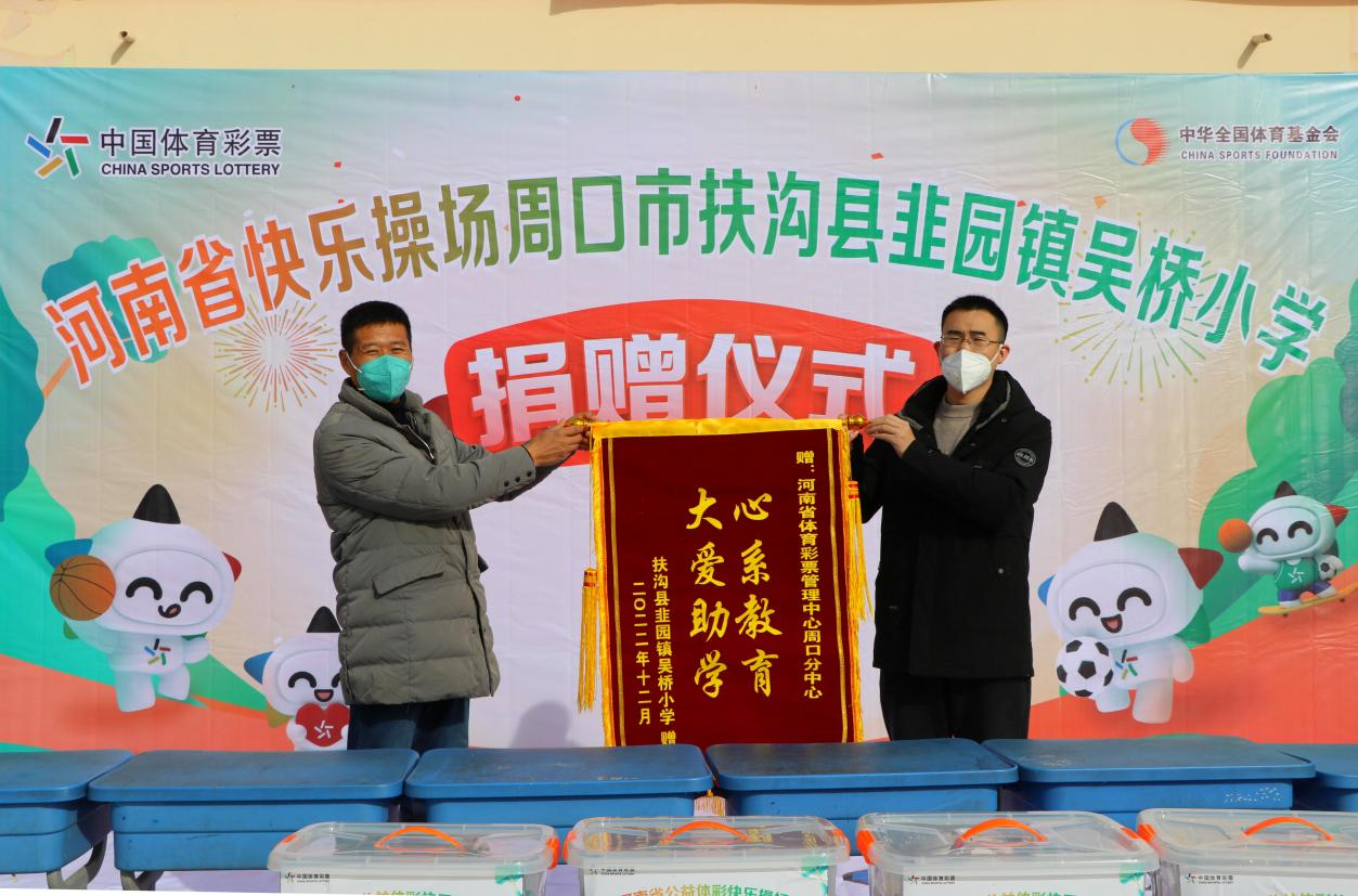 此次捐贈的體育器材有籃球、足球、排球、乒乓球拍、羽毛球拍等價值近2萬元的體育用品。為表達(dá)謝意,吳橋小學(xué)向周口體彩分中心贈送了“心系教育,大愛助學(xué)”的錦旗。