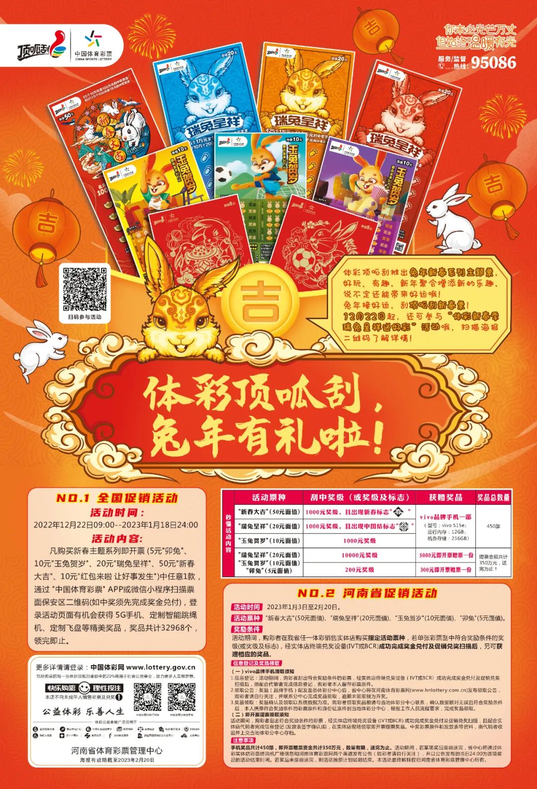 2.“體彩新春季”全國促銷活動細則詳見“中國體育彩票”微信小程序或“中國體育彩票”APP活動頁面,或登錄中國體彩網(wǎng)查詢相關(guān)信息。