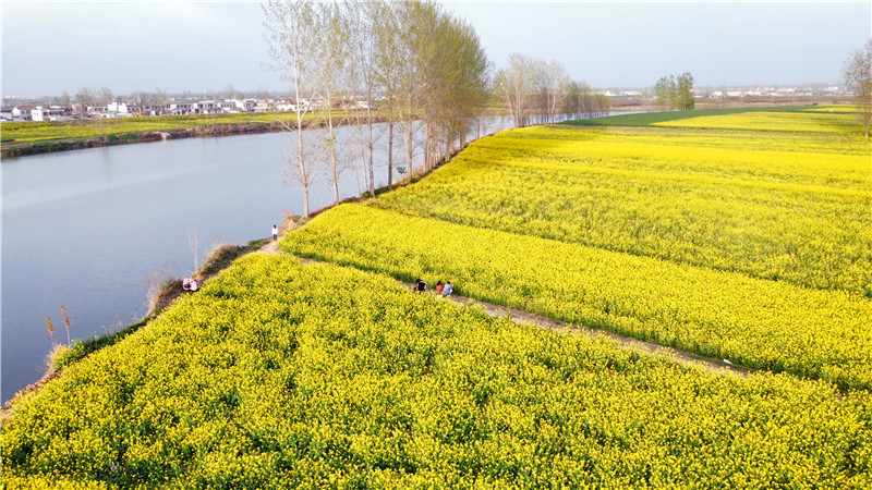 4月2日,春日明媚,沙潁河兩岸一片片金燦燦的油菜花“染黃”了大地,空氣中彌漫著香氣,大片的油菜花和漂亮的村居、田間勞作的農民交織在一起,如詩如畫,美不勝收,讓人心曠神怡。作為春日大自然最美的顏色,成片的油菜花海成為旅游愛好者追逐的風景。