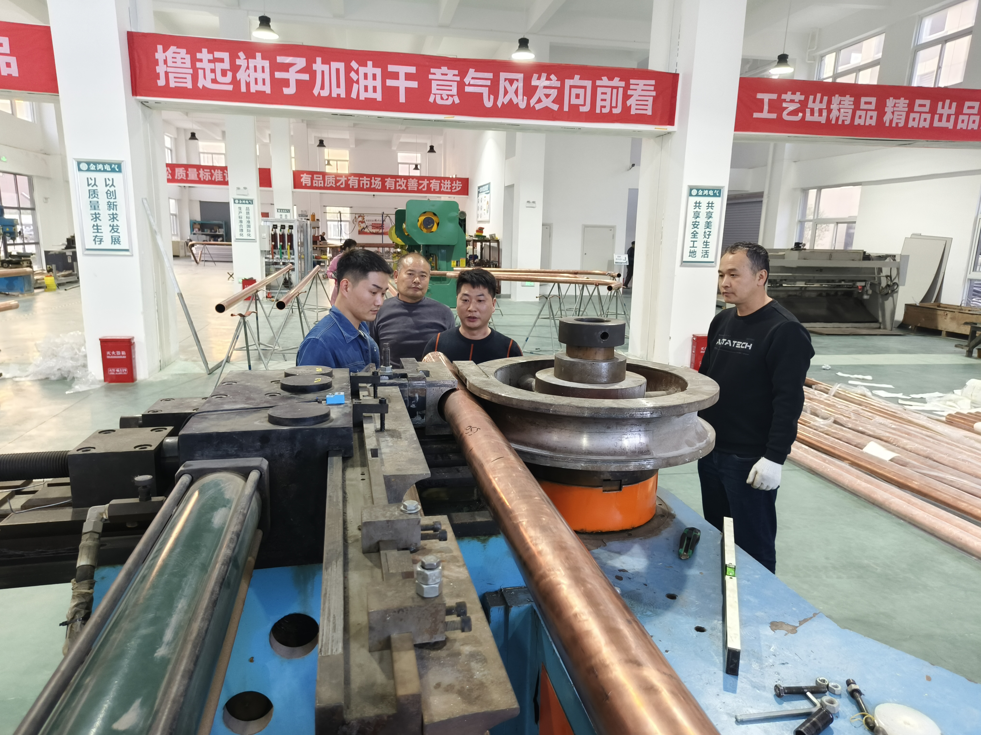 10月26日21時,臨港開發(fā)區(qū)中興新業(yè)港產(chǎn)業(yè)園內(nèi),河南金鴻電氣有限公司(以下簡稱金鴻電氣)生產(chǎn)車間燈光明亮,十多位技術(shù)工人加班加點,趕制重慶鋼廠訂購的一批絕緣銅管母線,11月初,這筆產(chǎn)品必須完成、送到。金鴻電氣總經(jīng)理苑福來說:“今年工廠邊建設(shè)邊生產(chǎn),預(yù)計年產(chǎn)值能達到1億元,為明年產(chǎn)能擴張打下基礎(chǔ)。”