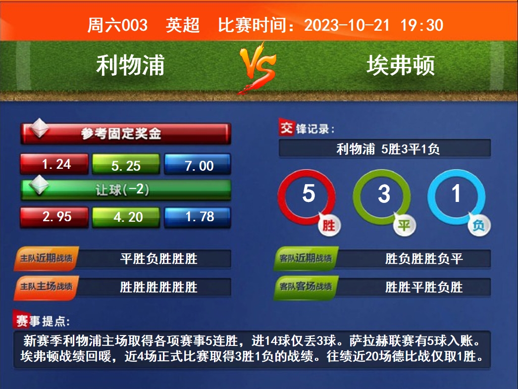周六003英超 利物浦VS 埃弗頓 2023-10-21 19:30