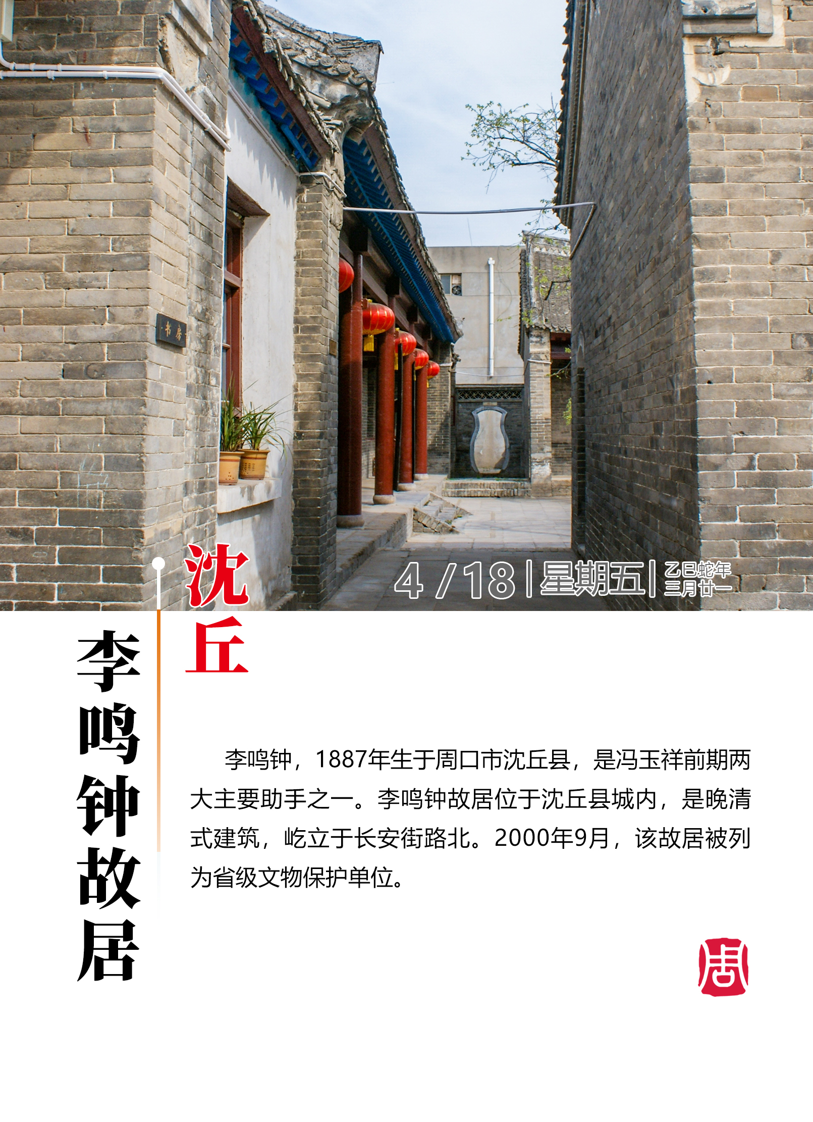 【海報(bào)圖】探尋歷史文化名城——沈丘李鳴鐘故居