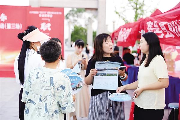 8月14日、15日,鹿邑縣人社局等單位在弘道苑廣場聯(lián)合舉辦“職引未來 筑夢青春”專場招聘會。此次招聘會邀請28家企業(yè)參加,提供涵蓋食品加工、智能制造、電子商務、餐飲服務等領域優(yōu)質就業(yè)崗位50余個。圖為招聘會現(xiàn)場。 記者 侯國防 通訊員 陳朝威 攝