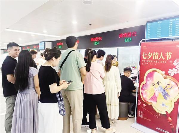 近年來,隨著人們對(duì)傳統(tǒng)節(jié)日和文化的重視,像七夕節(jié)這樣富有文化內(nèi)涵的傳統(tǒng)節(jié)日,成為新人辦理結(jié)婚登記的熱門選擇。此外,因諧音寓意美好而備受青睞的“520”“521”等“數(shù)字節(jié)日”,也保持著較高的結(jié)婚登記熱度。為積極應(yīng)對(duì)此次結(jié)婚登記高峰,確保每對(duì)新人都能高效、便捷、順利地完成結(jié)婚登記,川匯區(qū)民政局婚姻登記處提前制訂了工作預(yù)案。