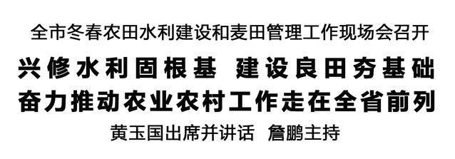 本報(bào)訊 (記者 王艷) 12月12日,全市冬春農(nóng)田水利建設(shè)和麥田管理工作現(xiàn)場(chǎng)會(huì)在商水召開,深入學(xué)習(xí)貫徹習(xí)近平總書記在河南考察時(shí)重要講話精神和關(guān)于“三農(nóng)”工作、治水興水的重要論述,全面落實(shí)全省冬春農(nóng)田水利建設(shè)和麥田管理視頻會(huì)議部署,分析研判當(dāng)前形勢(shì),安排部署重點(diǎn)任務(wù),扎實(shí)推進(jìn)今冬明春農(nóng)田水利建設(shè)和麥田管理等重點(diǎn)工作。市委書記黃玉國出席并講話。市長詹鵬主持。