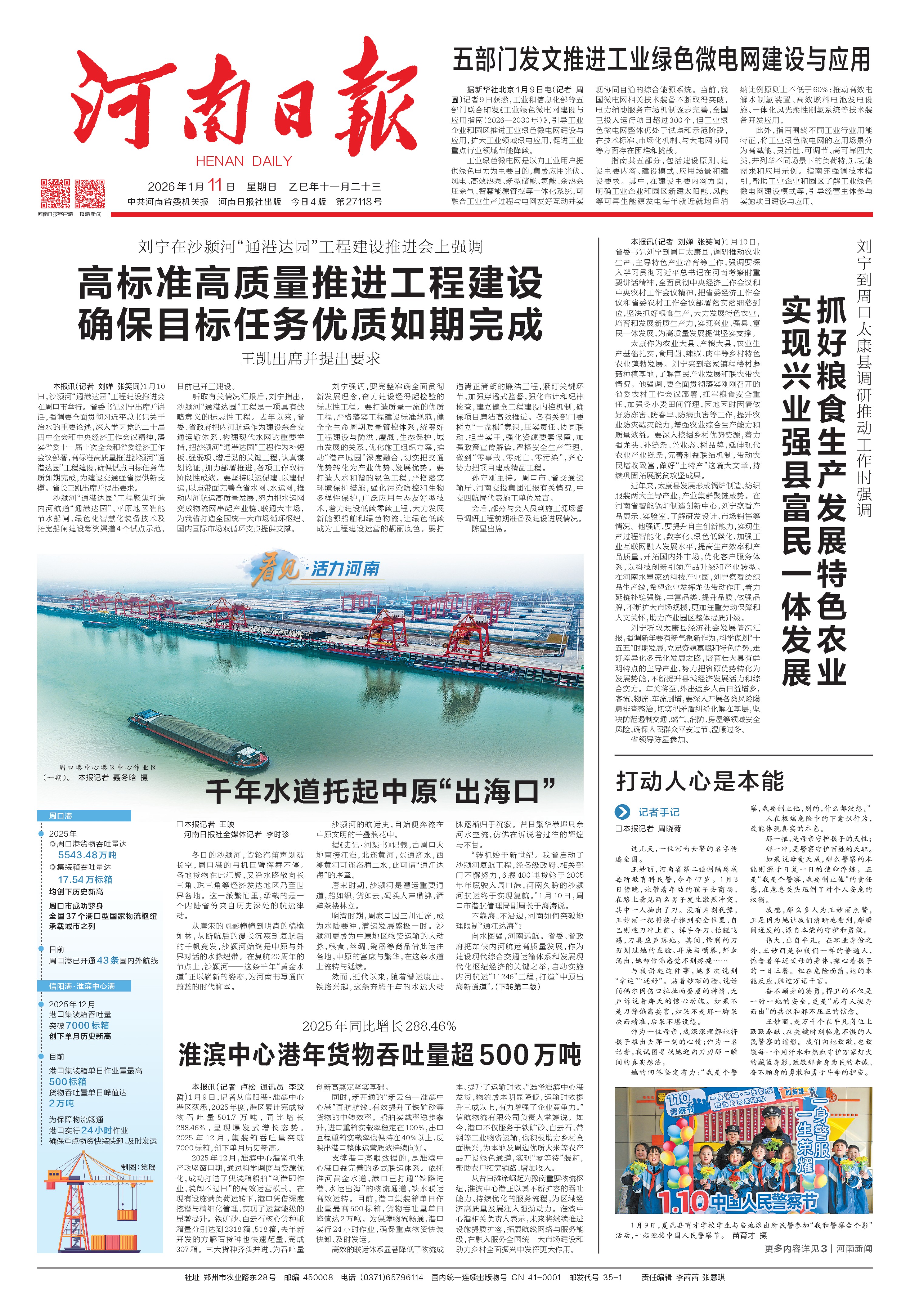 漯河港、平頂山港相繼開港運(yùn)營(yíng);周口港中心港區(qū)中心作業(yè)區(qū)一期工程去年年底建成投用,標(biāo)志著河南內(nèi)河集裝箱運(yùn)輸邁入“百萬(wàn)標(biāo)箱時(shí)代”;沙潁河“通港達(dá)園”工程開工建設(shè),進(jìn)一步完善我省水運(yùn)網(wǎng)絡(luò),服務(wù)和融入新發(fā)展格局。