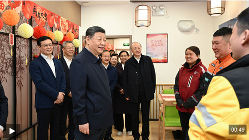 10日上午,習(xí)近平總書記來到北京市西城區(qū)新街口街道父母食堂考察。見到在這里休息的3名快遞小哥,習(xí)近平關(guān)切詢問他們跑快遞多久了、工作累不累、收入怎么樣、春節(jié)回不回家,為他們付出的辛勞和作出的貢獻(xiàn)點(diǎn)贊。習(xí)近平說,你們滿足千家萬戶需求,城市運(yùn)轉(zhuǎn)離不開你們,希望你們都能夠生活得好、工作得好。習(xí)近平強(qiáng)調(diào),各級黨委和政府一定要關(guān)心新就業(yè)群體,為他們的生活、工作、學(xué)習(xí)提供好服務(wù)。