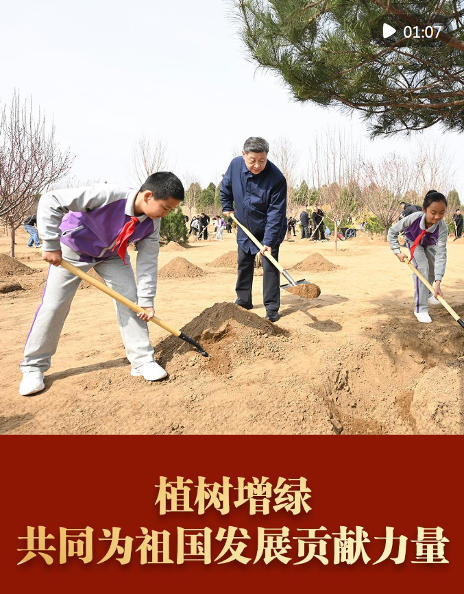 3月30日上午,習(xí)近平總書記在參加首都義務(wù)植樹活動時強(qiáng)調(diào),良好生態(tài)人人共享,也需要合力共建。要組織動員全社會廣泛參與植樹造林,為山川大地增添錦繡,讓中國式現(xiàn)代化的底色更加亮麗。
