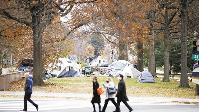 12月8日,在美國華盛頓,行人經(jīng)過無家可歸者居住的帳篷。……[詳細(xì)]
