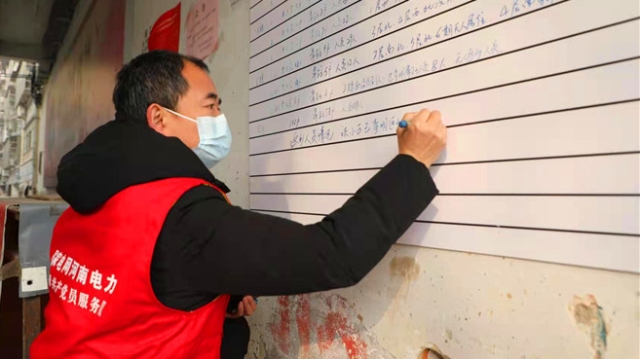 1月18日,在鹿邑縣英才小區(qū)門口一個(gè)帳篷內(nèi),國(guó)網(wǎng)鹿邑縣供電公司疫情防控卡點(diǎn)臨時(shí)黨支部正在召開(kāi)本月黨員大會(huì)。