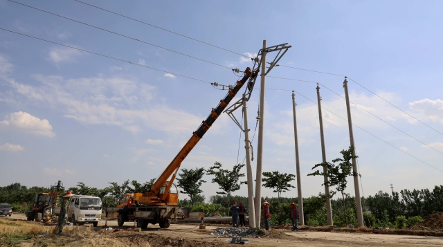 6月13日11時,天氣格外晴朗,烈日下氣溫突破38攝氏度。西華縣黃橋鄉(xiāng)潁河河堤上一片忙碌的景象,該縣供電公司搶修人員正在烈日下緊張有序地忙活著。