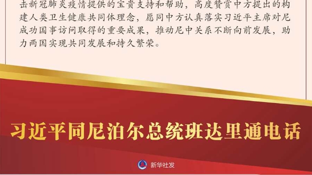 習(xí)近平指出,新冠肺炎疫情發(fā)生后,中尼兩國堅(jiān)定支持彼此抗疫努力,深入開展抗疫合作,彰顯了守望相助、同舟共濟(jì)的精神。