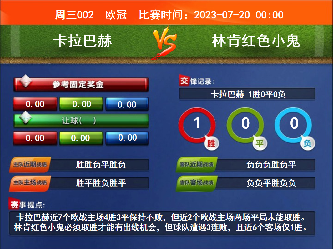周三競彩足球強檔:卡拉巴赫掌主動權(quán) 利勒切菜穩(wěn)定
