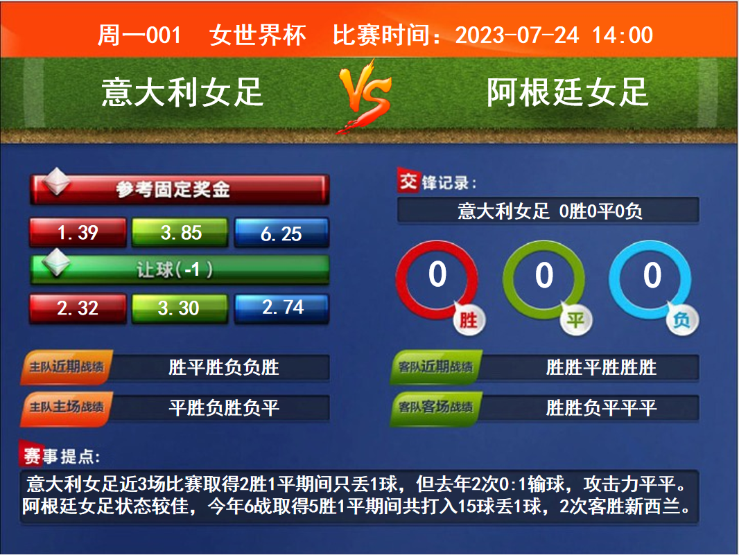 周一競彩足球強檔:意女足青春風(fēng)暴 德國女足有波動