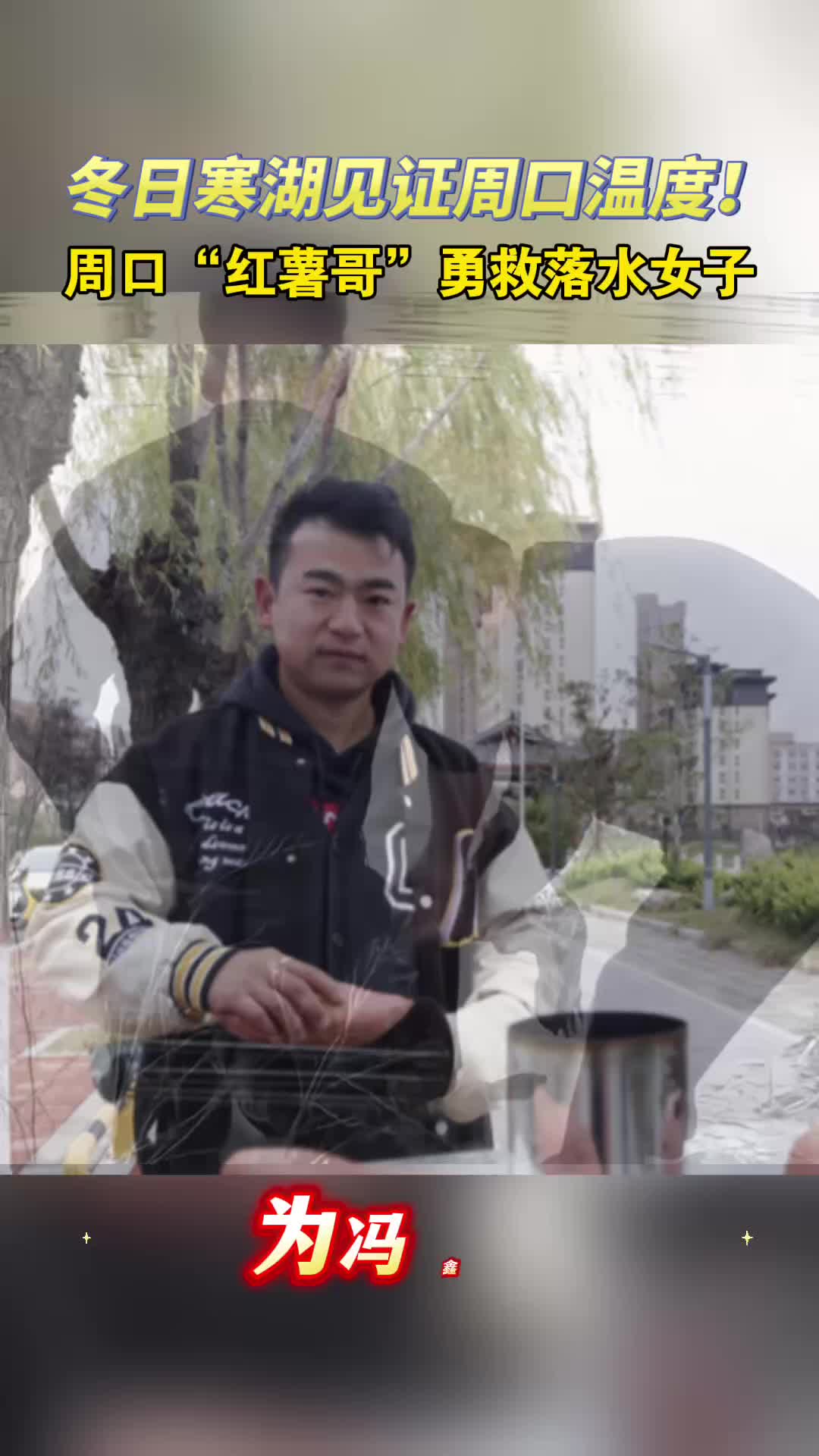 11月15日,在商水縣陽(yáng)城公園賣烤紅薯的馮鑫磊突然聽(tīng)到“有人掉水里了,快來(lái)救人!”的呼救聲。他循聲望去,發(fā)現(xiàn)幾米外的景觀湖里漂著一個(gè)人。他毫不猶豫地跳入冰冷刺骨的湖中施救。游回岸邊時(shí)他已體力不支,但救人的念頭支撐著他奮力前行。最終,他與一位趕來(lái)幫忙的黑衣大哥合力將落水女子救上了岸。?