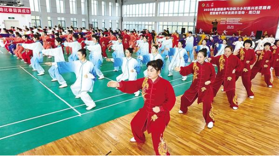 參賽隊(duì)員在比賽中。近日,2025年全國(guó)健身氣功助力鄉(xiāng)村振興志愿者服務(wù)暨百城千村展演交流展示活動(dòng)·周口站在周口市體育中心老年館拉開(kāi)帷幕,來(lái)自我市健身氣功協(xié)會(huì)24個(gè)站點(diǎn)的代表隊(duì)及周口高校的5支大學(xué)生參賽隊(duì)共200余人齊聚一堂,在五禽戲、八段錦、大舞、導(dǎo)引養(yǎng)生功十二法四大項(xiàng)目40個(gè)小項(xiàng)中展開(kāi)精彩角逐。