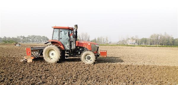 11月9日,在淮陽區(qū)高標(biāo)準(zhǔn)農(nóng)田示范區(qū),一臺東方紅拖拉機(jī)牽引著復(fù)式播種機(jī)在地里穿梭。