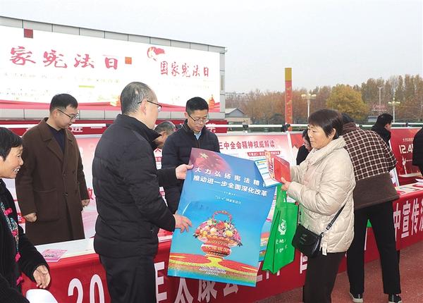 近日,太康多個(gè)單位在縣人民廣場舉行“12·4”國家憲法日集中宣傳活動(dòng),向廣大群眾普及憲法知識(shí),引導(dǎo)廣大群眾牢固樹立憲法意識(shí)、維護(hù)憲法權(quán)威。縣長張峰,縣領(lǐng)導(dǎo)邱范卉、劉鳳芹、王洪彬、史耀閣等到場參觀指導(dǎo)。