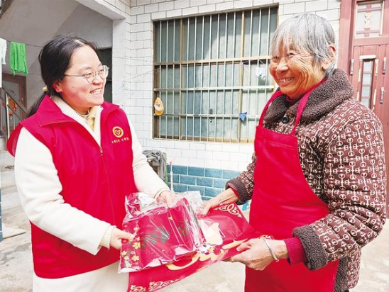 近日,在鹿邑縣社會(huì)福利院,86歲的吳素榮在暖陽(yáng)下悠閑地做著手工,臉上洋溢著舒心的笑容。