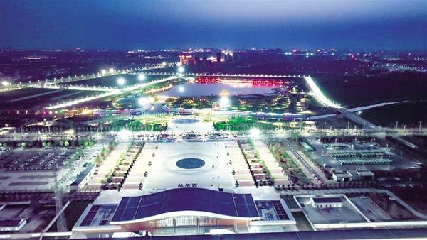 華燈初上,西華高鐵站夜景如畫。站前廣場布局規(guī)整,彩色鋪裝、圓形圖案兼具美觀與實用性,優(yōu)化人流集散。