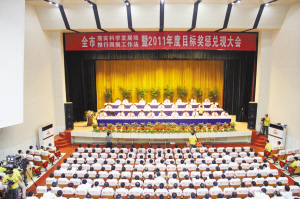 本報(bào)訊 (記者 楊光林) 8月27日,項(xiàng)城市落實(shí)科學(xué)發(fā)展觀推行四制工作法暨2011年度目標(biāo)獎(jiǎng)懲兌現(xiàn)大會(huì)隆重召開。項(xiàng)城市委書記黃真?zhèn)プ髁祟}為《解放思想搶機(jī)遇 強(qiáng)化執(zhí)行抓落實(shí) 為全面完成全年目標(biāo)任務(wù)而努力奮斗》的報(bào)告。