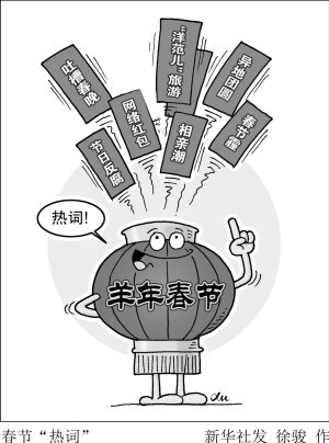 剛剛過去的羊年春節(jié)喜氣洋洋,看點多多:延續(xù)反腐高壓態(tài)勢,反腐相聲上了春晚,反腐動漫短片受熱捧,請客送禮的少了,清風(fēng)正氣得到弘揚;從“小眾試水”到“全民狂歡”,網(wǎng)絡(luò)紅包成為羊年春節(jié)的“標簽”,為傳統(tǒng)年俗注入新活力;在這個春節(jié),人們還發(fā)現(xiàn),異地團圓多了,旅游“爆棚”了,霧霾“爆表”了……
