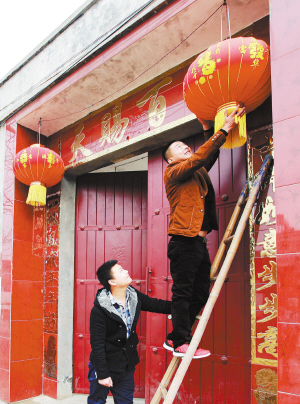 ①貼對聯,掛燈籠,喜迎新春。 (記者 王映 攝)