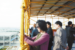 3月29日,參加2015年“5+2”經濟合作活動的30多名外地客商集中觀摩川匯區(qū)工業(yè)、商貿項目,并對川匯區(qū)亮點紛呈的項目建設贊譽有加。圖為外地客商正在拍攝規(guī)模宏大的華耀城項目。理效明 劉巍 攝